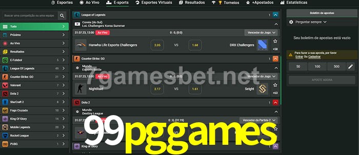 O 99pggames oferece uma grande seleção de opções de apostas em e-sports com probabilidades competitivas